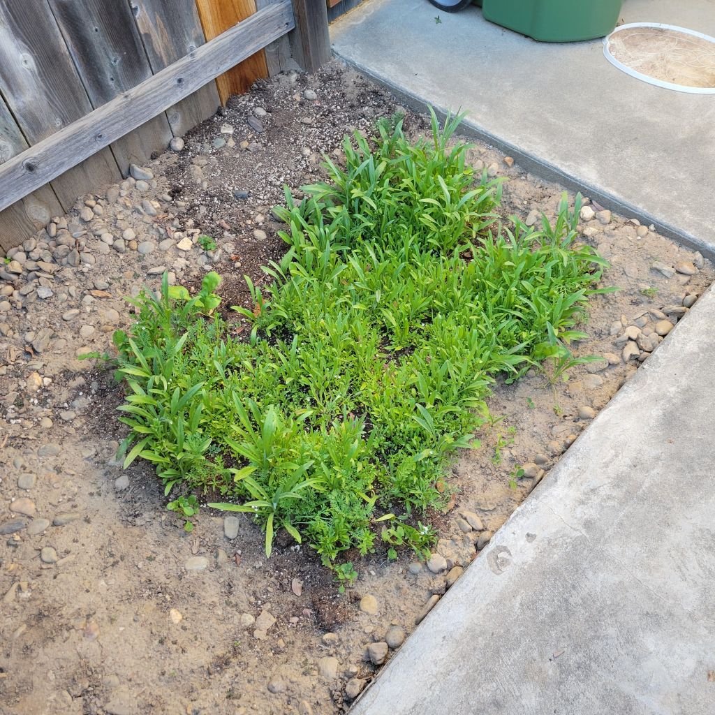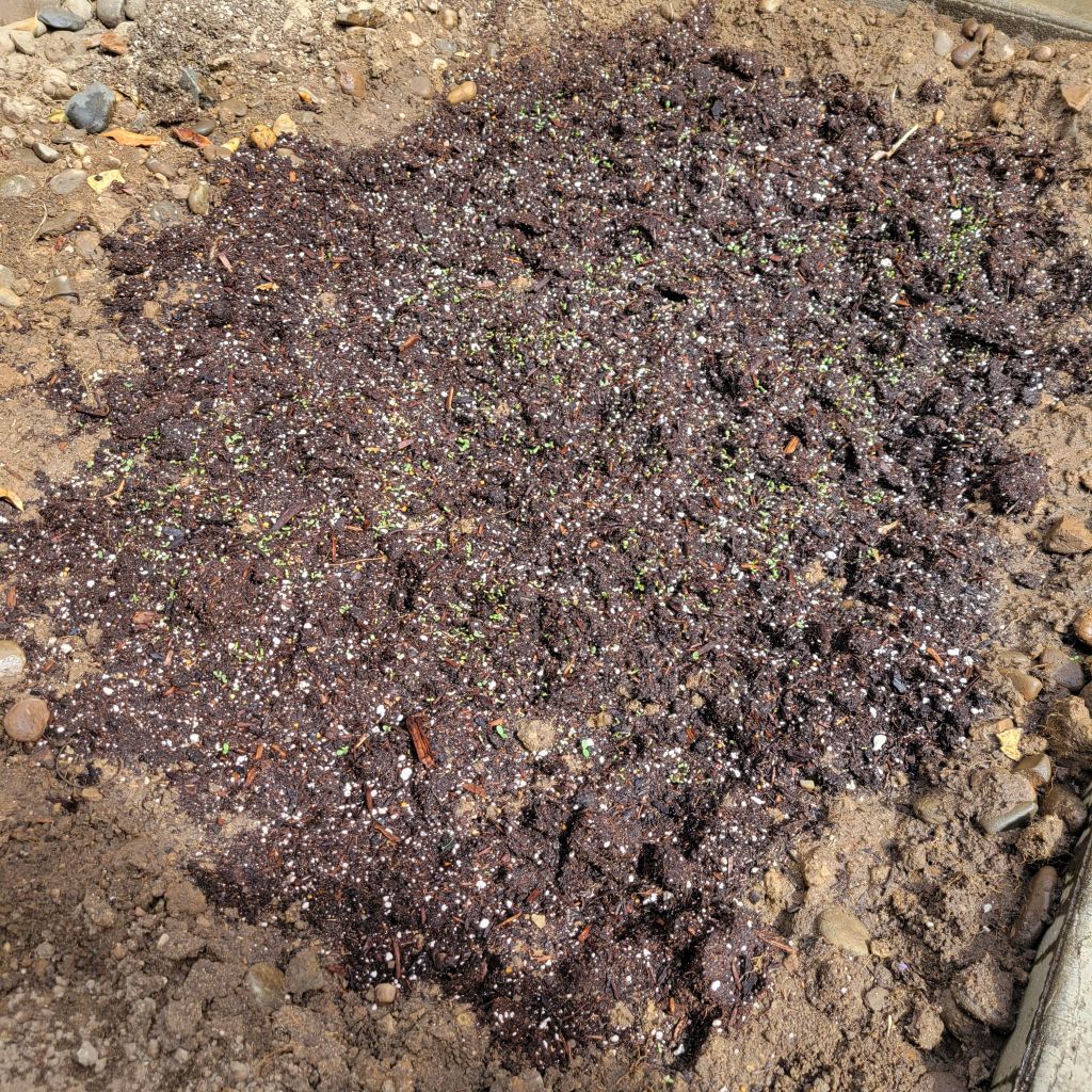 After the dog run, I weeded the front spot so’s I could fill it with wildflowers: