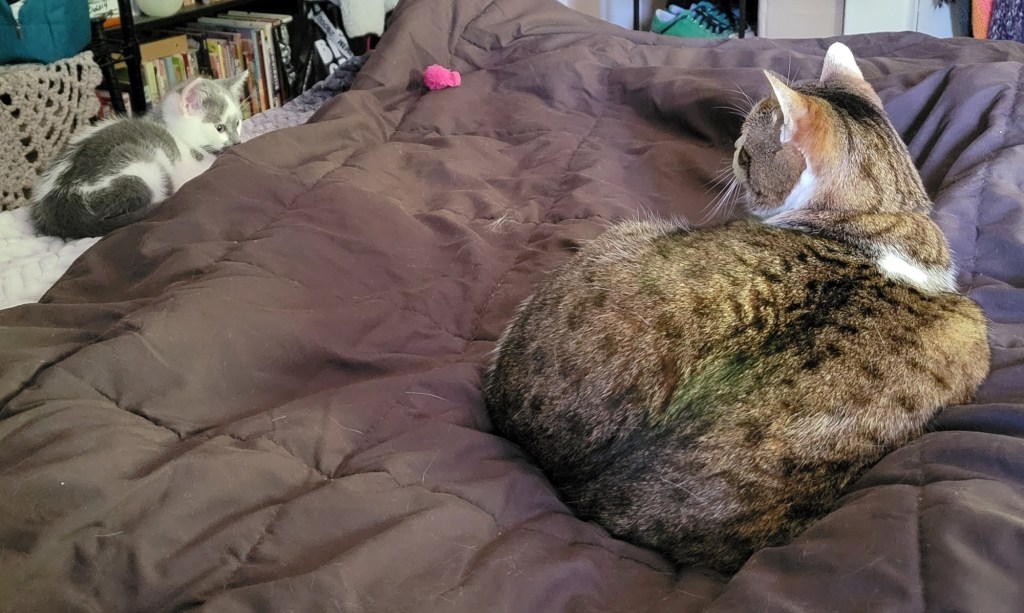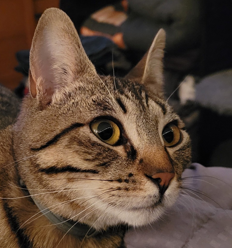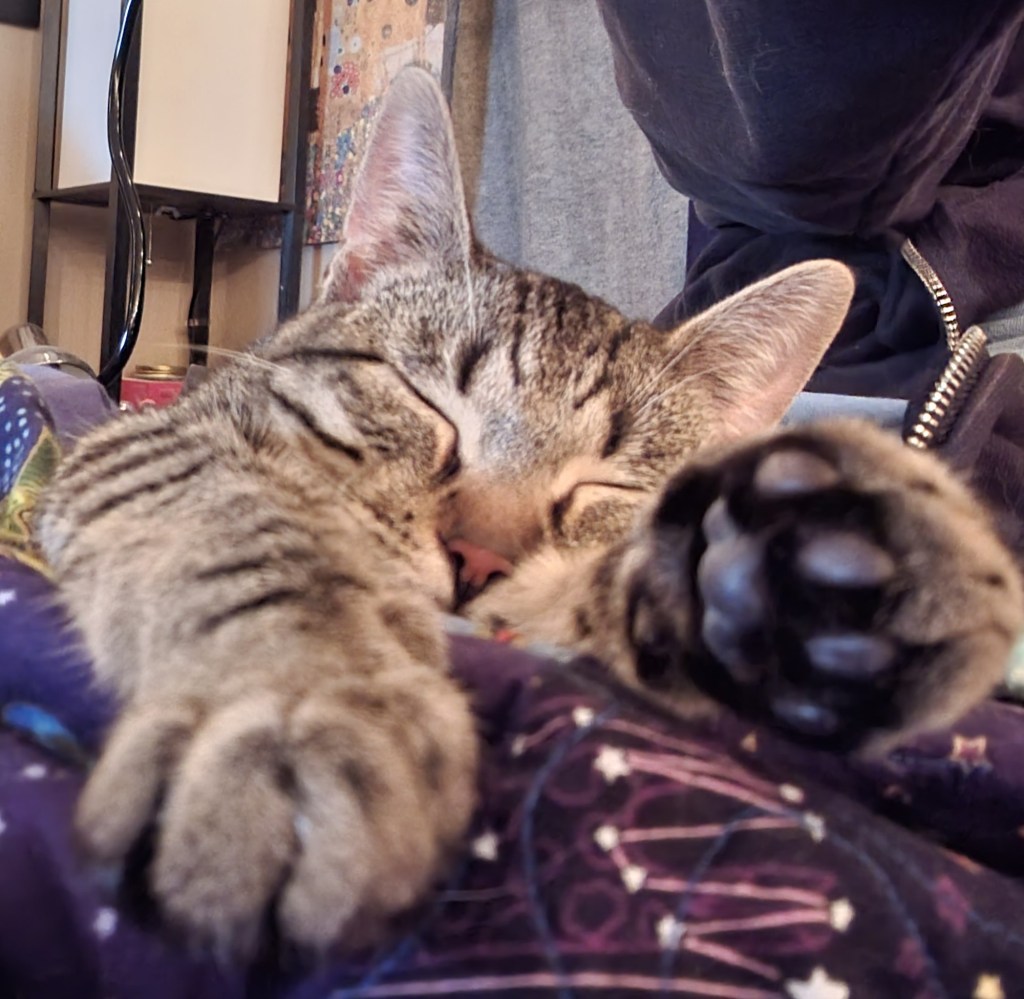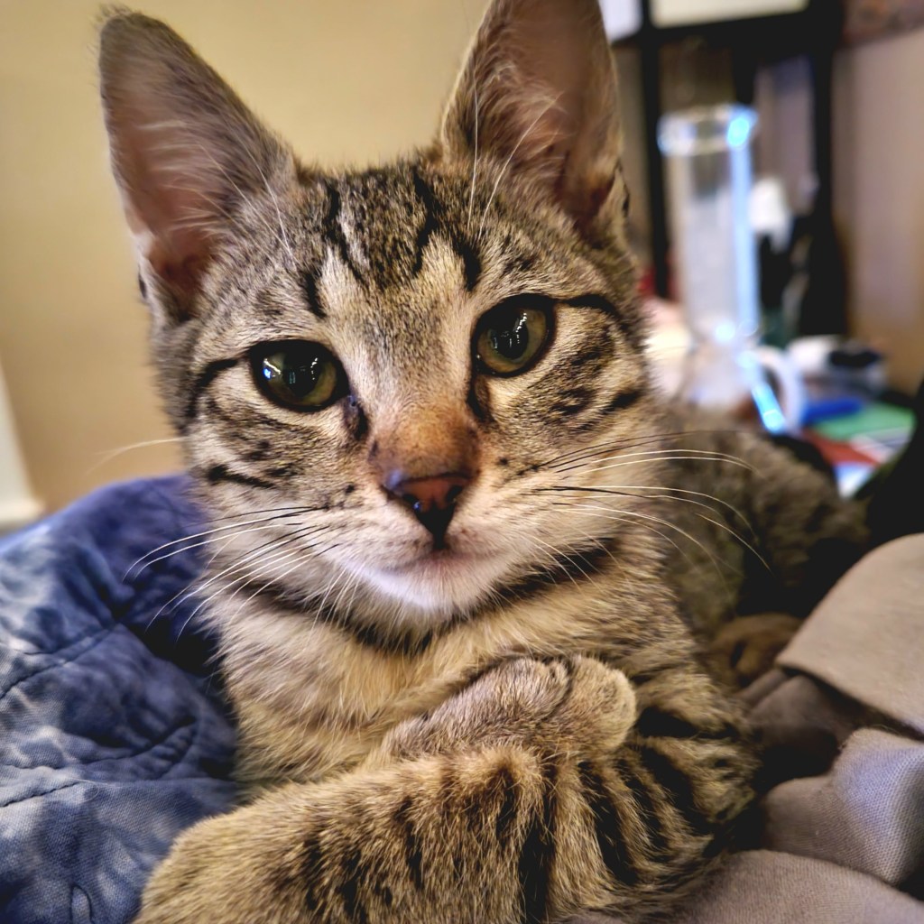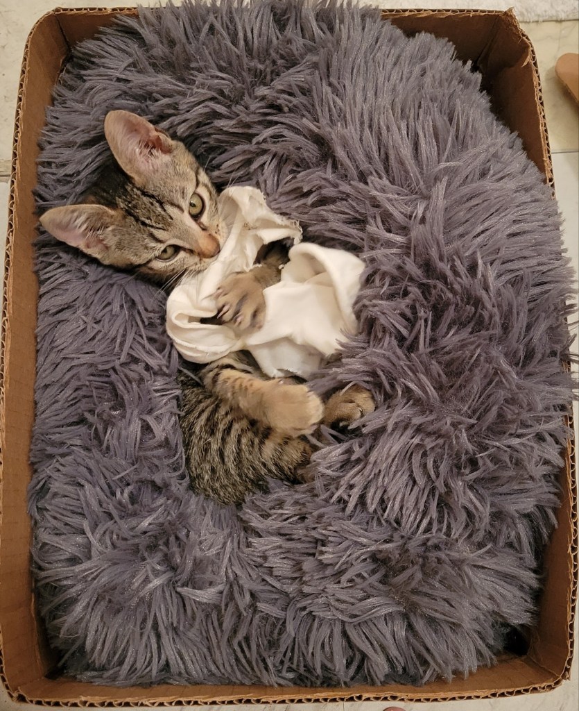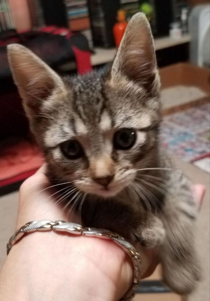 …asking if I knew anyone who could care for or foster it (she wasn’t sure of baby’s sex) as my Avon lady is actually, mildly allergic to cats…like she gets a sore throat/stuffy nose…not like my other friend, Natasha, who never got to visit me cuz she would have stopped breathing. 🥺
