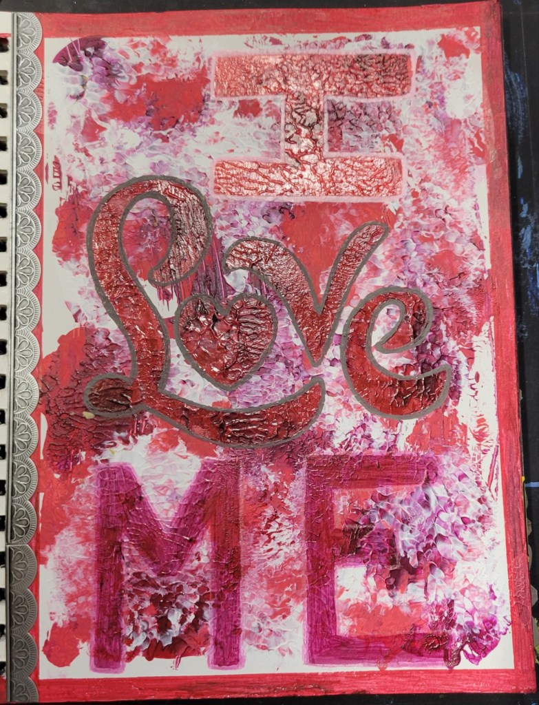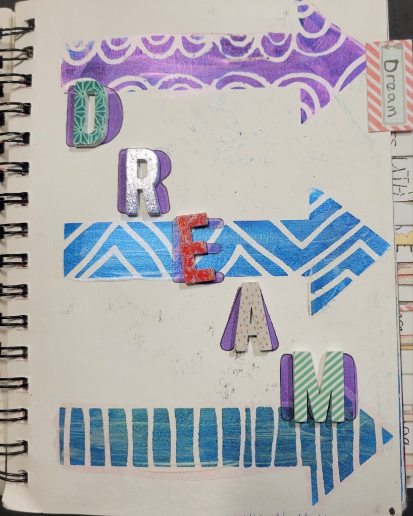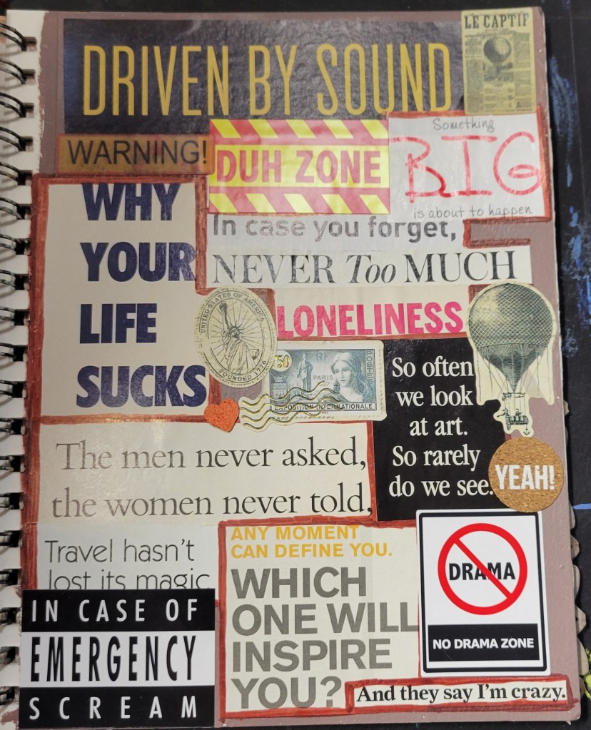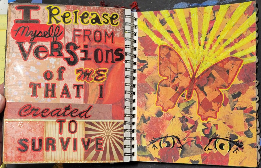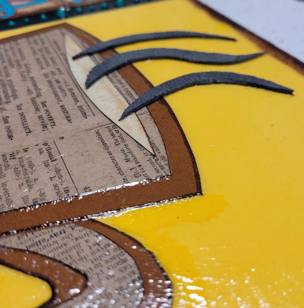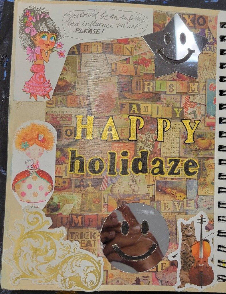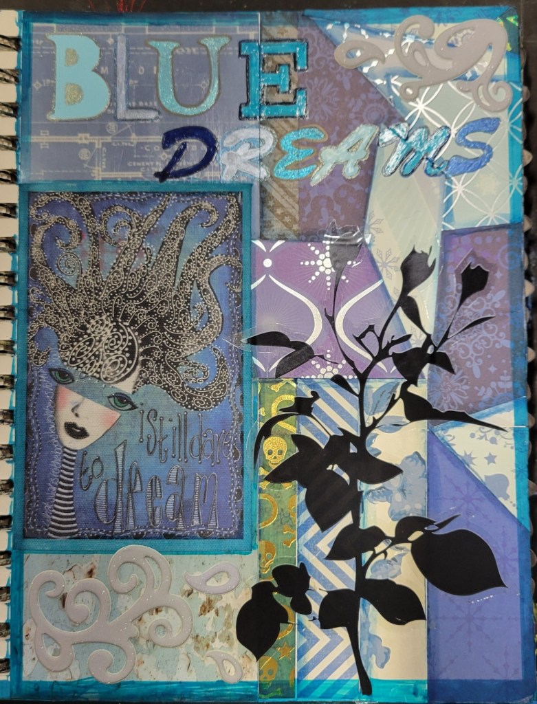Ingredients: acrylic paint & mediums, artist pens, colored card stock, scrapbook and found papers, craft jewels, leather & suede, UV protective sealer, PCH*.
