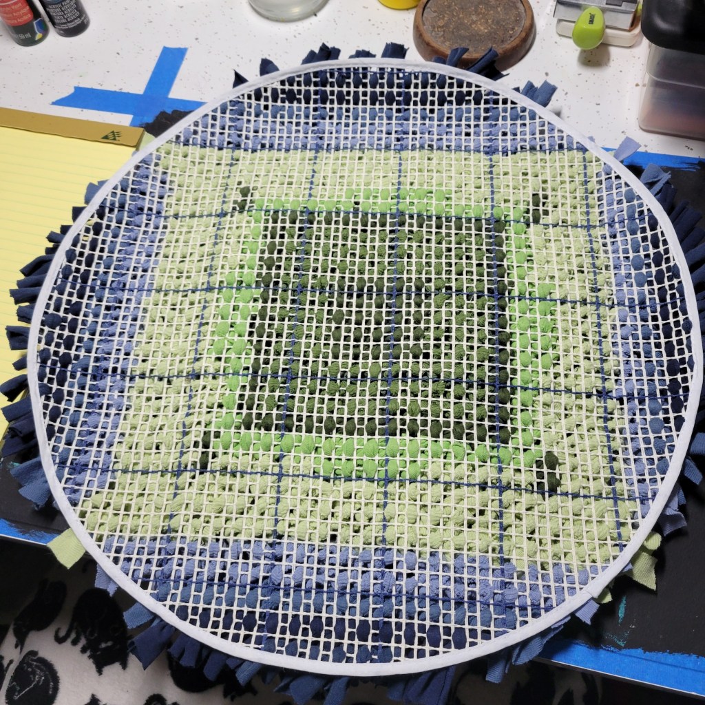 I found 18 inch latch-hook rug canvases years ago & finally decided to make it happen.