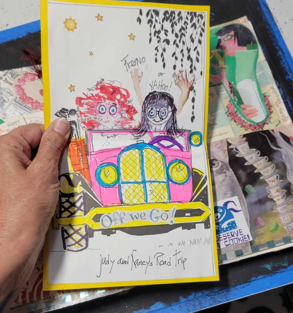My dear friend, Judy Whiting, sent me a card package for my birthday that I made this spread with.