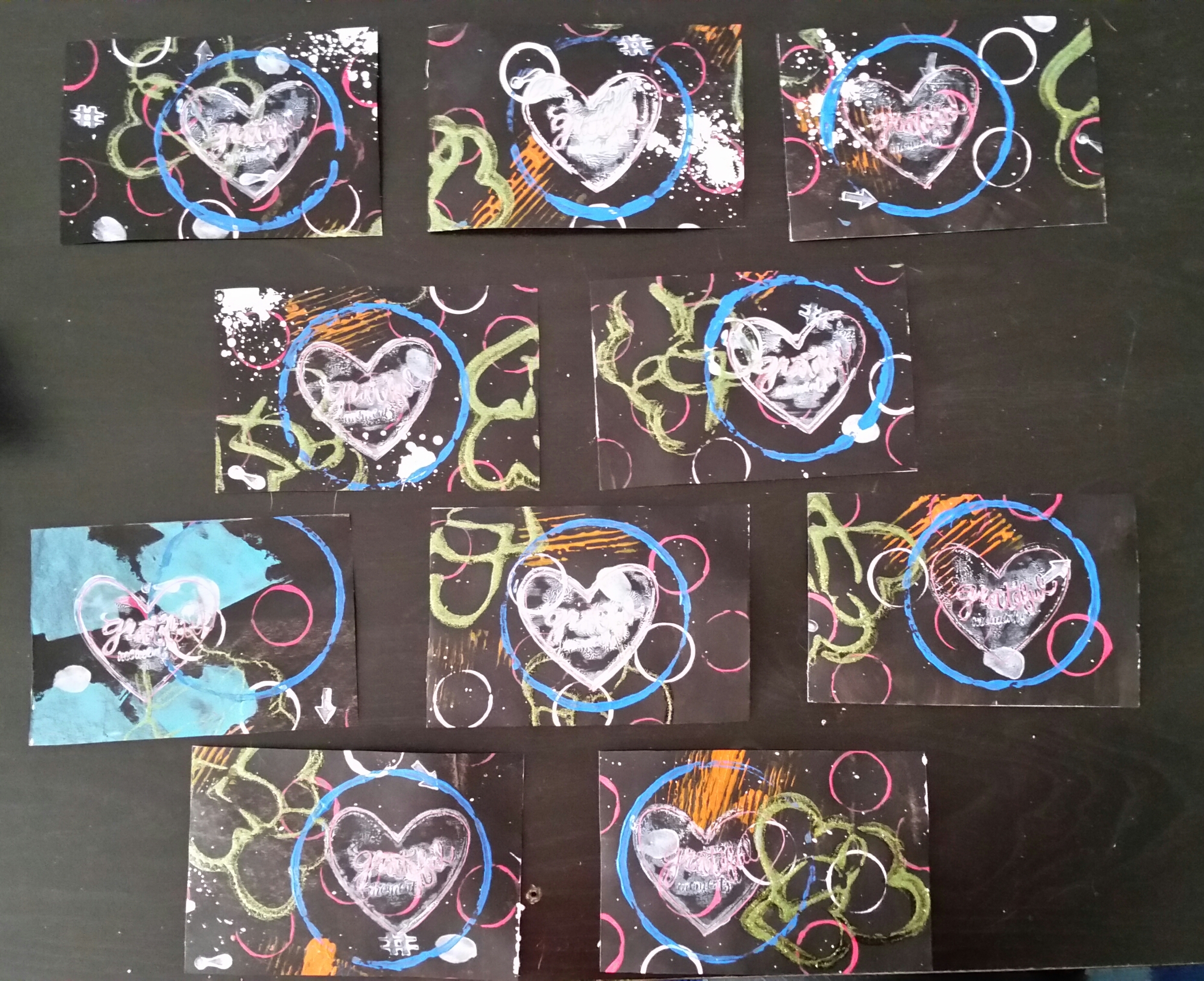 Right up until the moment I drop all 10 into the mailbox, I feel like my contribution to this swap is lame and so much less than other folks’, but then I start to receive my cards from other people all over the world and realize that I MADE SOMETHING COOL and gave it away to strangers. This fact AUTOMATICALLY makes my art awesome, I think.
