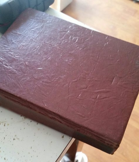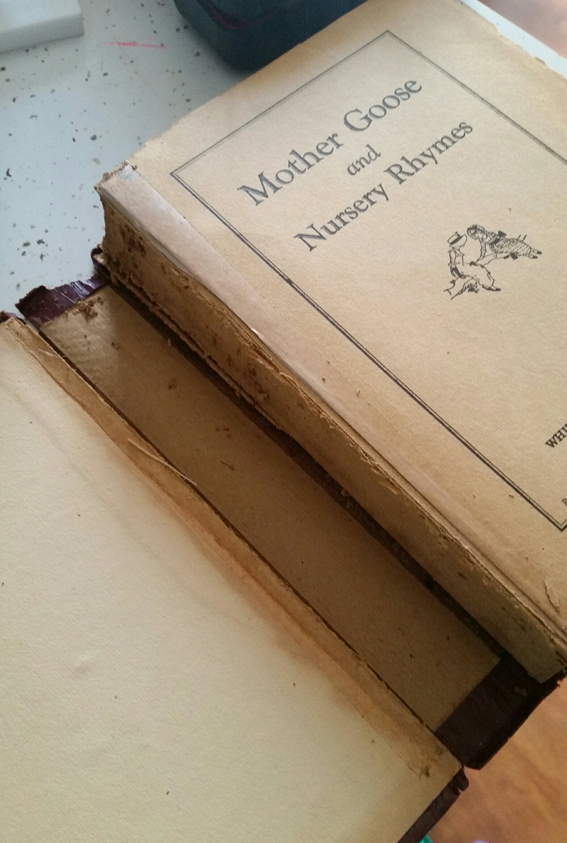 The practice book is a badly decayed Mother Goose. I thought to make it the Coffee book, because I love the cover: