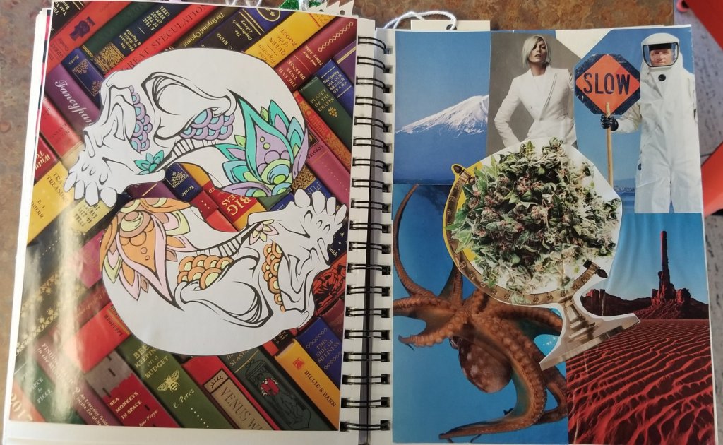 Here is Number one, with coloring pages and random collages created during the first 3 months of the Covid-19 pandemic. I rode out the first 2.5 months with my love and the 2 cats in Lodi, CA.