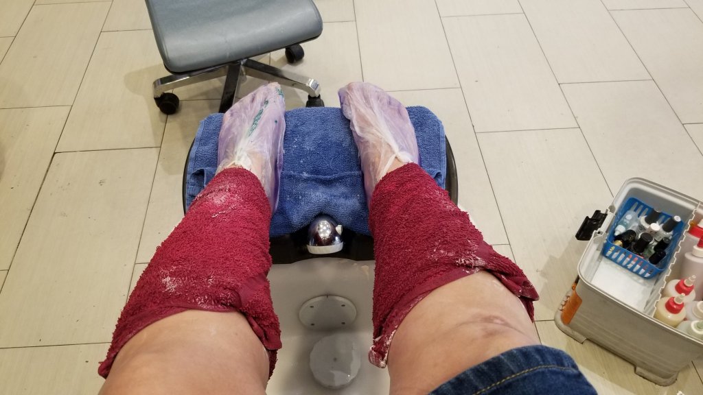 Found out that my pedi spot (Signature Nails in Vallejo) is open with limited folks inside. Couldn’t wait any longer, so I made an appointment, picked up a small frappuccino (because pedi + coffee = happiness), and now I am comfortably ensconced on a massage-y chair, while my feet are pampered. ð