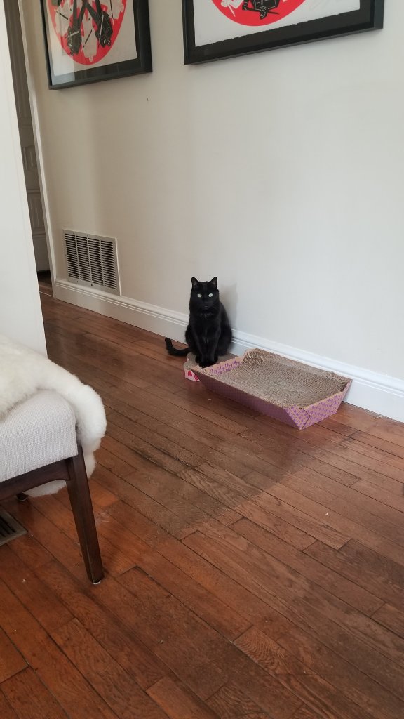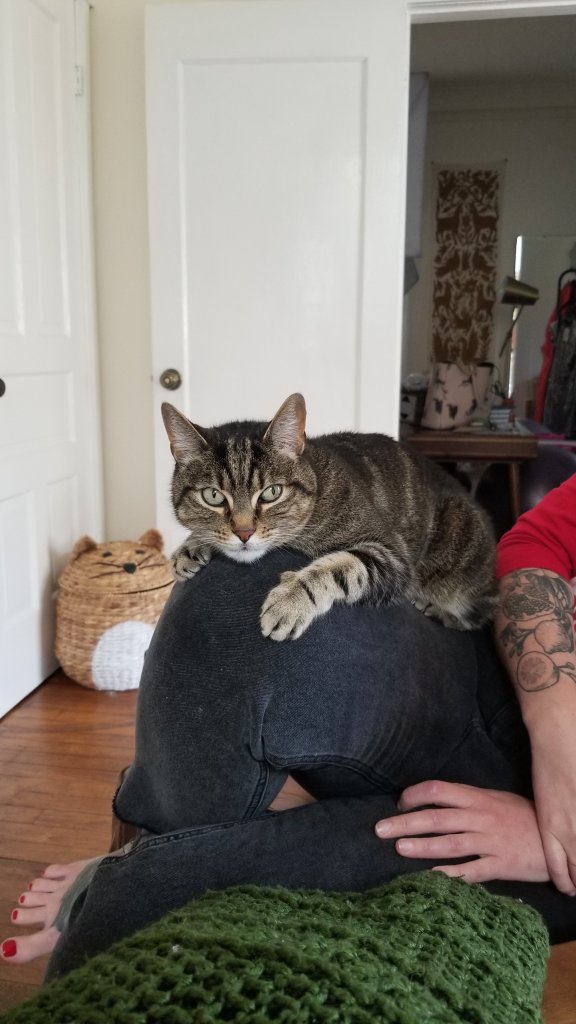 Robert has an unnamed little kitty who has been the “truck tire” cat, as she sits on the truck tire of the truck that is usually parked in the garage.