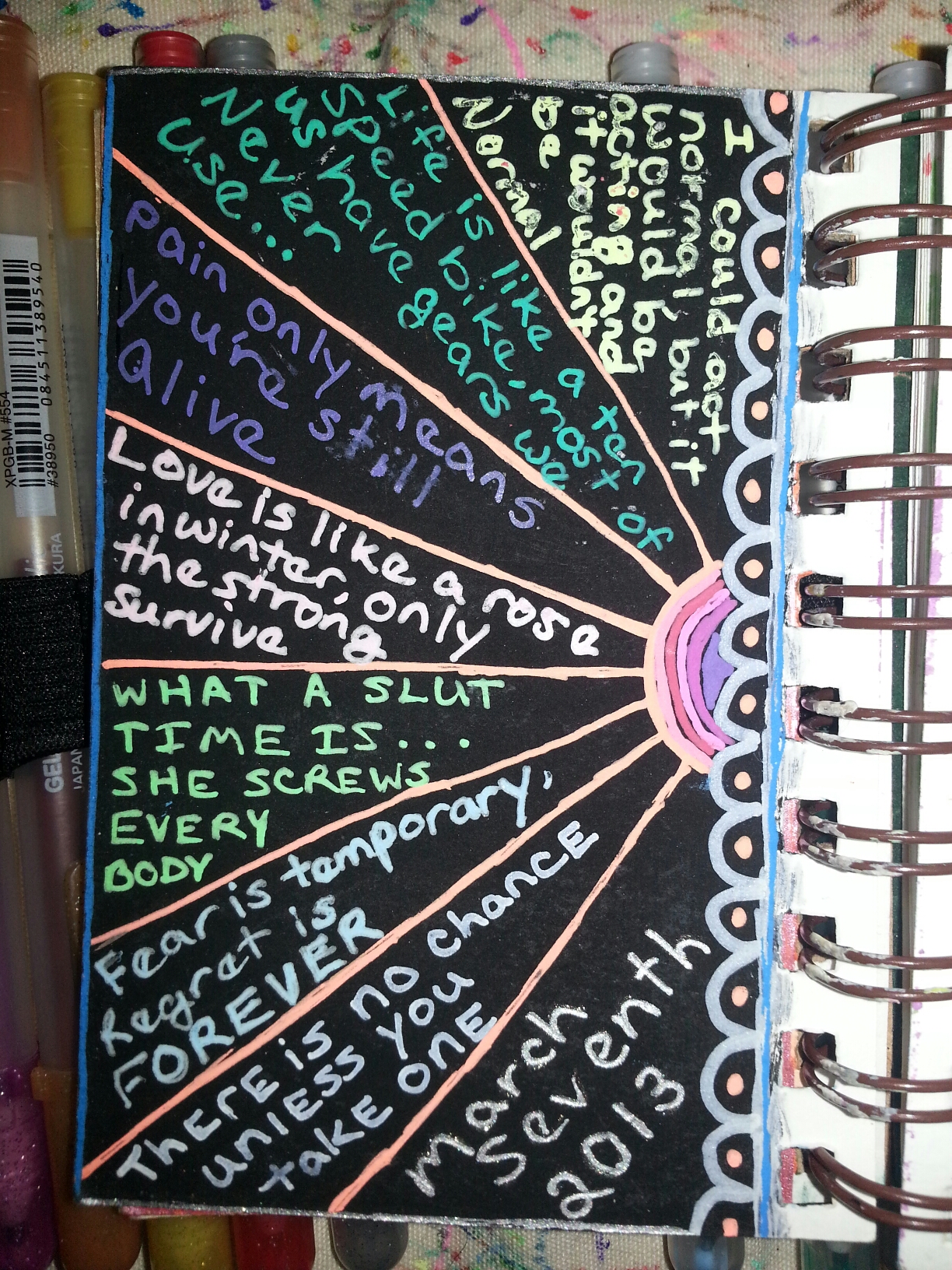 That’s it. The 2nd of my 6 journals is done. The next will likely be #5 as it has 3 pages left to do, but time will tell.